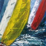 Her love of the sea and coastline is reflected in much of her work - although she doesn't limit herself to just these areas. She approaches her work from the baseline of creating the 'atmosphere, life and movement' of the image she wants to produce, working with many different mediums, but primarily acrylics.